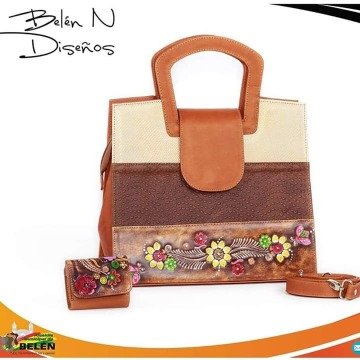 Bolso dama con apliques pintados y repujados a mano. Incluye. Correa manos libres en cueroCARTERA DAMA