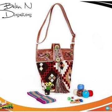 Cartera de dama en cuero 100% adicional contiene correa manos libres apliques pintados y repujados a mano un año de garantiaMOCHILA WUAYU