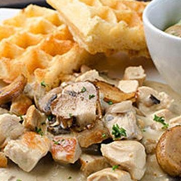 Pollo al Curry: Trozos de pechuga en salsa de curry amarrillo, acompañado de waffles de la casa y ensalada o vegetales del día.Pollo con Champiñones: Combinación de Pechuga de pollo y trozos de ch...Postres y Waffles de Dulce